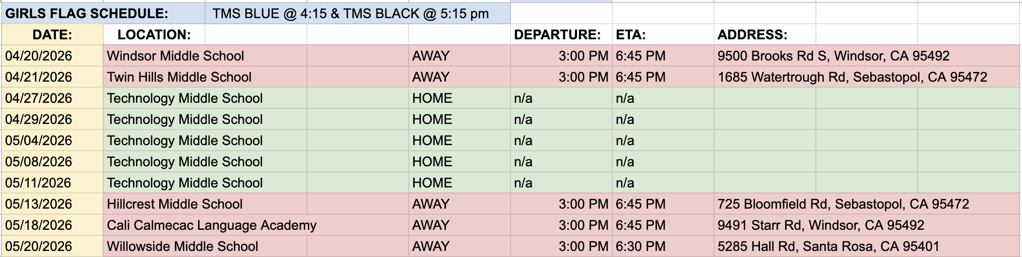| Girl's Flag Football (6th - 8th) | Scott Lowe | 04/20/2026 - 05/20/2026 | Schedule |